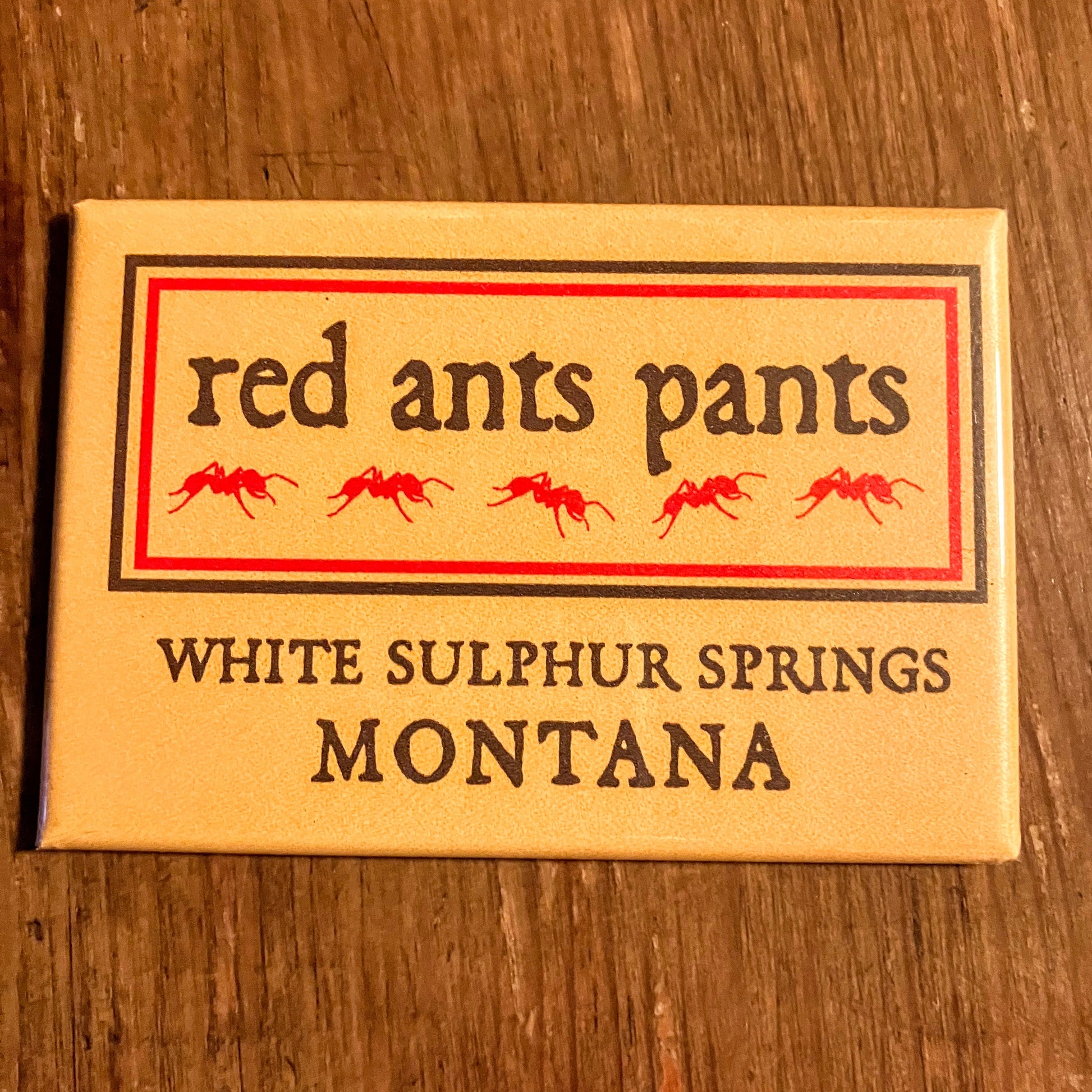Show your support with our classic Red Ants Pants button magnet — simple, bold, and built to stick around. Perfect for your fridge, toolbox, locker, or anywhere you want to display a little Montana-made grit.